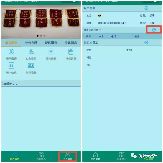 2、點擊右下角個人信息選項,按+字符號綁定戶號、手機號、身份證號碼。(綁定內容需與開戶資料一致)。