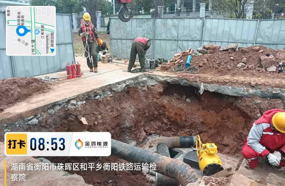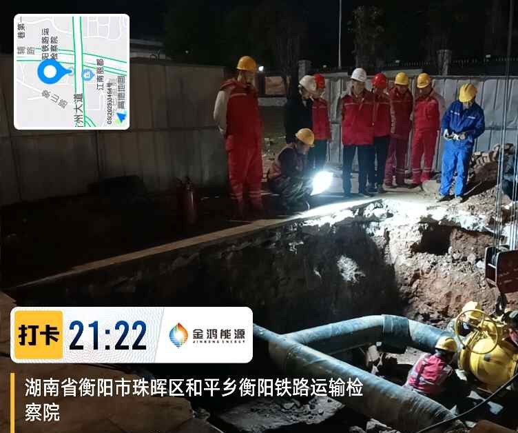 為此,衡陽市天然氣公司科學謀劃、周密部署,組建專業技術攻堅團隊,反復勘查現場、優化方案,制定了詳盡的安全與應急預案。作業期間,施工人員嚴格遵循規程,在狹小空間內精準完成開挖、焊接、安裝開孔設備、帶壓開孔、截流接駁、密封檢測等一系列高精度操作。現場多崗位協同,實時監測壓力與濃度,應急力量全程待命,確保了作業安全、精準、高效推進。